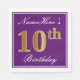 Serviette En Papier Elégant violet, Faux Or 10ème anniversaire + Nom
