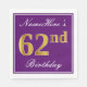Cette conception simple et élégante de serviette en papier comporte un message comme "NameHere’s 62nd Birthday" (avec le "62nd" ayant un faux look doré) dans une zone carré de couleur violette avec un contour de bordure simple. Le nom est dans un texte de type script de couleur blanche, et peut être personnalisé. Des serviettes comme celles-ci pourraient être utilisées à une fête d'anniversaire pour quelqu'un qui célèbre son soixante-deuxième anniversaire. [~Z0000140]