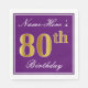 Serviette En Papier Elégant violet, Faux Or 80ème anniversaire + Nom