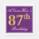 Serviette En Papier Elégant violet, Faux Or 87ème anniversaire + Nom