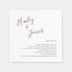 Des serviettes mariages simples avec vos noms dans un élégant script manuscrit en haut à gauche et une liste de faits amusants sur vous en violet. Le design minimaliste est agrémenté d'une touche romantique grâce au lettrage à la main chic.