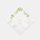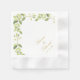Serviettes mariages personnalisées avec chemise de verdure aquarelle et design élégant en écriture dorée.