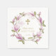 Serviette En Papier Élégante Fleurs de Magnolia Rose Wreath Gold Bapti
