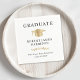 Des serviettes élégantes pour la fête de remise des diplômes avec un casquette de grade d'or, et "Graduate" et le nom du diplômé, l'école et l'année de classe dans la typographie serif classique.