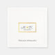 Vos propres initiales et un petit coeur d'amour avec une fausse bordure d'or, sur une jolie serviette en papier standard... avec un texte personnalisé "merci de fêter avec nous".
