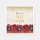 Serviette En Papier Elégante Rose rouge Floral Gold 90e fête d'anniver