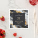 Serviettes élégantes Black and Gold 21st Birthday Party. Cette invitation présente un design élégant avec une touche glamour, avec un mélange sophistiqué de noir et d'or. Les accents d'inspiration marbre apportent une touche de luxe, tandis que l'esthétique générale dégage un style raffiné, parfait pour célébrer un événement marquant. Une combinaison étonnante de couleurs et de textures fait de ce design une déclaration inoubliable pour toute occasion spéciale.