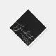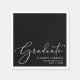 Serviettes de fête noire élégante avec "Graduate" dans un script blanc chic et le nom de la grad, l'école et l'année de classe dans une simple typographie blanche moderne.