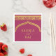 Élever votre paysage de table mariage avec une touche d'élégance et de tradition. Ces serviettes personnalisées en papier présentent une belle parties scintillant d'or à l'éléphant et à la fleur de lotus, les symboles de chance, de prospérité et de nouveaux débuts en mariage indien et hindou. Accompagnés d'une majestueuse illustration d'une arche de cérémonie de remise de cartons, ces serviettes confèrent une touche cohérente et culturellement significative pour votre journée spéciale. Personnalisez-les avec les noms du couple heureux pour un détail unique et mémorable que vos invités chériront. Disponible dans une gamme de couleurs vives pour correspondre à votre thème mariage : rouge classique, violet royal, rose enchanteur, orange énergétique, bleu marine sophistiqué, ou noir intemporel. Ces serviettes personnalisées sont à la fois élégantes et fonctionnelles, ajoutant une touche culturelle à votre réception de mariage.
