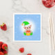Un elfe de Noël mignon tenant une boîte cadeau entourée d'étoiles sur Napkin en papier de Noël bleu clair. Le texte peut être personnalisé. Passez un merveilleux Noël !