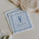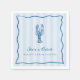 Nos serviettes pour la réception de mariage sur le thème du homard sont parfaites pour votre célébration au bord de la mer ! Le design fantaisiste et côtier présente des lettrages et des illustrations méditerranéens bleus sur un fond rayé cabane bleu pâle. Un gribouillage de homard dessiné à la main est assis au-dessus de deux lignes de texte personnalisé, le tout encadré par une bordure de gribouillage en forme de coquillage ondulé. Affiché avec "elle est un bon parti" et le nom de la future mariée.