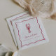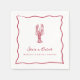 Nos serviettes pour la réception de mariage sur le thème du homard estival sont parfaites pour votre célébration au bord de la mer ! Le design fantaisiste sur le thème de la côte comporte des lettrages et des illustrations rouges estivales sur fond blanc. Un gribouillis de homard dessiné à la main est assis au-dessus de deux lignes de texte personnalisé, le tout encadré par une bordure fantaisiste en forme de coquille ondulée. Affiché avec "elle est un bon parti" et le nom de la future mariée.