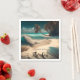 Serviettes en papier à thème océanique. Eau turquoise et palmiers sur une plage de sable blanc. Citation : "Amoureux de la mer."