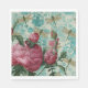 Un design de style vintage de roses roses et libellules d'or sur un arrière - plan à motifs bleus.
