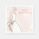 Une jolie serviette en papier de douche nuptiale avec un croquis de mariée en robe blanche avec bouquet sur arrière - plan rose vif avec un arrière - plan en cercle aléatoire.