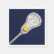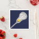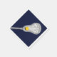 Fête de crosse créative ou les filles équipe des serviettes d'événement sportif avec bâton de laxisme et balle sur le terrain bleu marine.