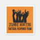 Amusants et festifs, ces serviettes sont le moyen parfait pour garder vos invités de fête propre cette saison d'Halloween. Le design comporte un tas de mains zombies tendant vers le haut et le texte "chasseurs de zombies" en noir avec un arrière - plan orange qui peut être changé. Joyeux Halloween.