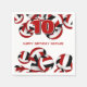 Ces serviettes de fête d'anniversaire à thème volleyball sont entièrement personnalisables et comprennent des grappes de volleyball rouge, noir et blanc aux bords supérieur et inférieur - personnalisez avec votre texte personnalisé - par katz_d_zynes
