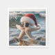 Une étoile de mer porte un chapeau de Père Noël et des lunettes de soleil sur l'eau peu profonde de l'océan
