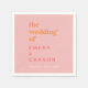 Ces serviettes en papier mariage rose et orange d'été rétro sont parfaites pour une réception de mariage colorée. Le design vintage moderne et unique est doté d'une palette de couleurs vives, rose vif, orange vif et rose chaud, avec des beignets de plage tropicaux amusants. Personnalisez les serviettes avec les noms de la mariée et du marié, et la date du mariage.