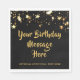 Personnalisez vos serviettes de fête d'anniversaire dans un thème étoilé noir et or avec votre texte personnalisé dans une police de caractères de script de brosse moderne. Convient pour tout anniversaire d'âge ou pour lui ou elle. MODIFICATIONS : Modifiez la couleur ou la police de texte, la taille, la couleur et le placement de l'arrière - plan en cliquant sur CUSTOMISER PLUS LOIN. Contactez le concepteur via Zazzle Conversation ou makeitaboutyoustore@gmail.com si vous souhaitez modifier ce design, sur un autre produit ou pour coordonner des éléments.