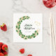 Create personalized napkins for your elegant botanical theme wedding with elegant emerald green and gold eucalyptus wreath and hearts on white background. Type the bride's and groom's names and the event date using the template, or customize it even more inside the design tool.