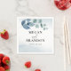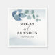 Serviettes mariages Eucalyptus avec simple couvert de feuilles eucalyptus. Design botanique élégant avec brouillard d'aquarelle, feuillage et verdure dans les tons bleu-gris poussiéreux vert. Le modèle est prêt à ajouter le nom de la mariée et du marié ainsi que la date du mariage. Veuillez parcourir ma collection d'eucalyptus poussiéreux pour trouver les articles correspondants.