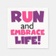 Si vous aimez courir, courir 5Ks, 10Ks, demi-marathons ou marathons, vous adorerez ce texte coloré en violet et rose qui lit Run and Embrace Life ! T-shirts Run and Embrace Life, sacs, tasses, cartes, autocollants, iPhone et autres coques d'appareils électroniques, magnets, planches à sec, montres, jetez des oreillers, plaques et serviettes de papier, des gardiens, et bien plus encore!