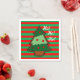 Serviettes de cocktail Festive, audacieuses rouge et verte rayée de Noël avec design d'arbre de Noël.