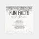 Partagez quelques faits amusants sur la fêtée d'honneur avec vos invités spéciaux. Fille, moderne et amusant faux paillettes argentées avec une typographie mignonne. Tout le texte est débloqué et réglable. Tapez vos propres faits amusants à partager avec les invités. Excellent souvenir et vraiment unique. Idéal pour les fêtes de quinceañera ou Sweet 16. Coordonne avec de nombreux modèles et thèmes de fête différents.