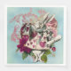 Version colorisée d'Alice dans le lapin blanc de Wonderland en tant que membre du tribunal de la Reine des Coeurs. Ajouté floral sur arrière - plan bleu en détresse. Idéal pour les soirées à thé Mad Hatter et autres évènements fantaisistes.