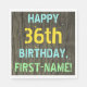 Ce design amusant de serviette de fête d'anniversaire comporte un message comme "HAPPY 36th BIRTHDAY, FIRST-NAME!", où le nom peut être personnalisé. L'arrière - plan présente un motif rustique, brun, imitation bois de grain. Le texte du message personnalisable est composé de couleurs comme le bleu, le jaune et le vert, et il a un aspect inspiré de celui du lettrage peint et recouvert de pochoirs. Des serviettes comme celles-ci pourraient être utilisées à une fête d'anniversaire pour quelqu'un qui célèbre son trente-sixième anniversaire. [~Z0000292]