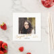 Cette serviette en papier de fête de remise des diplômes comporte une photo carré et un texte en écriture or sur un arrière - plan blanc. Le texte du script dit : Félicitations Grad. Personnalisez avec votre photo préférée pour un accent amusant sur votre fête de remise de diplômes.
