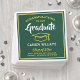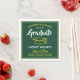 Ajoutez une touche élégante et personnalisée aux décorations de la fête de fin d'études supérieures ou secondaires avec ces serviettes personnalisées en papier vert, or et blanc. Tout le texte est simple à customiser. Le design comprend un arrière - plan vert, un casquette en mortier jaune, une typographie moderne et élégante et une calligraphie manuscrite. Félicitations au diplômé !