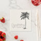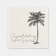 Serviettes en papier à dessin minimaliste sur le thème de la plage tropicale avec palmiers et les mots "Félicitations pour vos fiançailles". Fournitures de fête de fiançailles de mariage sur la plage avec dessin moderne simple de palmier pour célébrer le couple chanceux.