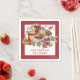 Serviettes de Noël personnalisées Festive - Design présente un éventail d'illustrations aquarelles de boissons chaudes d'hiver et douceurs de noël, le texte Manger, Boire et Soyez Joyeux et nom de famille.