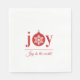 serviettes en papier de Noël faites en blanc avec texte rouge lisant joie avec un ornement flocon de neige à la place du o. Joy to the world in red script text peut être personnalisé pour lire ce que vous voulez. Des produits correspondants sont disponibles pour votre événement de vacances.