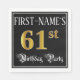 Ce design de serviette en papier au thème d'anniversaire orné et élégant comporte un nom personnalisable et le message « 61e fête d'anniversaire ». Le grand nombre « 61e » a un motif de couleur inspiré de l'or imitation/faux, les mots « Birthday Party » sont dans un texte de style script opulent, et le fond est noir par défaut (bien qu'il puisse être personnalisé). Des serviettes en papier luxueuses et opulentes comme celle-ci pourraient être utiles lors d'une célébration/fête d'anniversaire organisée pour célébrer le 61e anniversaire de quelqu'un.