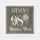 Ce design orné et luxueux de serviette en papier à thème d'anniversaire comporte un nom personnalisé et le message "98th Birthday Party". Le grand numéro "98th" et les mots "Birthday Party" sont dans un texte élégant de style script. L'arrière - plan a un motif imitation/imitation à grains de bois. Des serviettes en papier élégantes et fantaisistes comme celle-ci pourraient être utiles lors d’une fête d’anniversaire qui a lieu pour célébrer le quatre-vingt-dix-huitième anniversaire de quelqu’un. [~Z0000564]