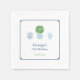 Ce design intemporel de serviette présente mes illustrations originales à l'aquarelle (topiaire de buis et pots de gingembre bleus et blancs) et une bordure de clé grecque créée numériquement. Montré ici pour une fête d'anniversaire adulte, mais conviendrait également pour une fête de fiançailles formelle ou même un événement d'entreprise.