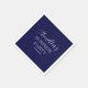 Serviettes de fête d'anniversaire bleu et blanc de la Marine. Ce design est joliment peint, Navy Blue and White Surprise Birthday Party. Cliquez sur le bouton personnaliser pour plus de flexibilité dans la modification du texte ou le déplacement des graphiques. Contactez-nous si vous avez besoin de cette conception appliquée à un produit spécifique pour créer votre propre article correspondant unique