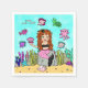 Jolie sirène aux cheveux rouges avec rose et noir, poisson, corail, tortue et autres vies marines amusantes pour une fête d'anniversaire à thème tropical ou plage de sirènes.