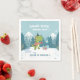 Terminez la fête d’anniversaire d’hiver RAWR de votre enfant avec ces adorables serviettes Dinosaur Party! Dotées d'une caricature ludique T-Rex en écharpe et casquette de fête, debout dans un pays enneigé avec pins, ballons et cadeaux, ces serviettes correspondent parfaitement à l'invitation et ajoutent une touche amusante et festive à votre table de fête. Parfaites pour effacer les miettes de gâteau, les déversements de cacao et les petits désordres de dinosaures, ces serviettes sont à la fois décoratives et pratiques. Customisez avec le nom et les coordonnées de votre enfant pour créer un look de fête coordonné et mémorable.