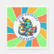 Serviettes en papier pour la fête d'anniversaire du garçon, bleu, vert, jaune et orange. Mignonne pour tout petit garçon qui aime les dragons !
