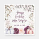 Floral et citrouille automne décoration de fête d'anniversaire serviette en violet, vert et pêche. Avec une belle aquarelle fleurie, feuillage et design citrouille. Design automne/automne idéal. Idéal pour les anniversaires d'automne.