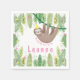 Célébrez l'anniversaire de votre enfant avec ces serviettes de fête d'anniversaire mignonnes et paresseuses ! Avec une adorable paresse peinte à la main dans un casquette de fête rose et jaune accroché dans la jungle. De jolies fleurs jaunes et roses ornent les feuilles de la jungle.