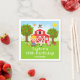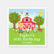 Cette serviette mignonne et amusante présente un garçon aux cheveux blonds et à la peau claire à côté d'une grange rouge avec une girouette coq. Il y a des animaux de ferme adorables tels qu'une vache, un cochon et une poule. En arrière-plan, on voit un ciel bleu vif, des pommiers, du soleil, des papillons et des marguerites. Le texte combine des polices grasses et sans empattement pour un look stylé et moderne. C'est parfait pour une fête d'anniversaire sur le thème de la ferme.