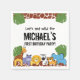 Personnalisez cette serviette de 1er anniversaire pour l'événement de votre petit. Avec une girafe, zèbre, hippo, tigre, lion et éléphant illustrations.