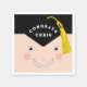 Serviettes de fête de fin d'études créatives avec un dessin animé de diplômé dans une toque noire classique avec un gland doré. Pour personnaliser, modifiez le texte pour ajouter le nom de votre diplômé préféré de la promotion.