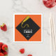 Serviettes de fête créatives avec casquette noir classique et modèle de gossel or sur arrière - plan orange. Modifiez le texte pour ajouter le nom de votre grade favori et l'année de classe supérieure.